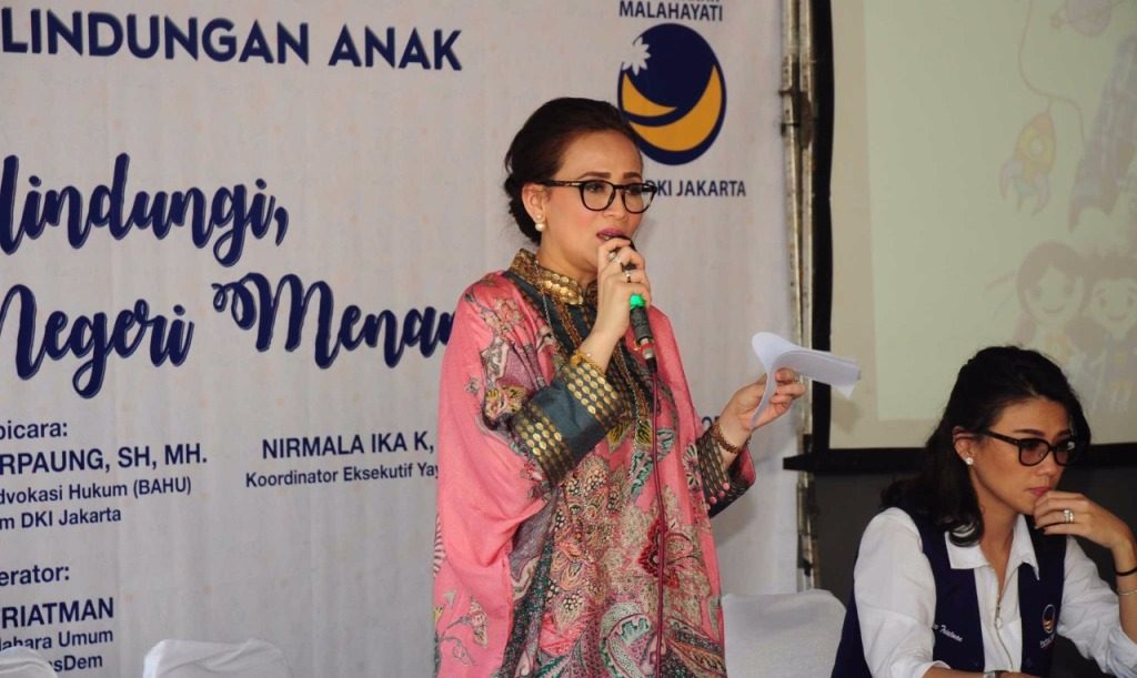 JAKARTA, (16 Maret): Ketua Dewan Pimpinan Pusat (DPP) Partai NasDem bidang Kesehatan, Perempuan dan Anak, Amelia Anggraini mengajak kepada seluruh elemen masyarakat untuk dapat melindungi dan menjadi orang tua bagi anak-anak Indonesia. Sebagai orangtua, menurut Amel, harus bisa menjadi pendengar serta menjaga anak-anak agar terbebas dari jerat kekerasan pada anak.