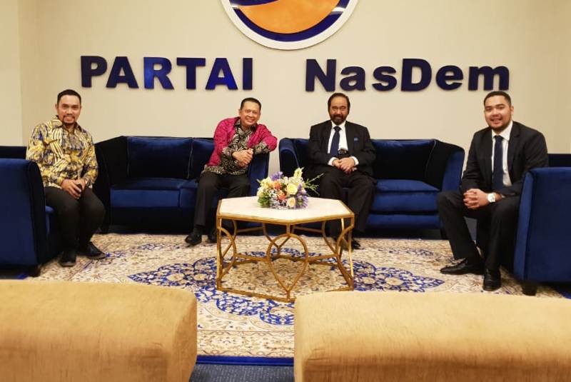 Ketua DPR Bambang Soesatyo (Bamsoet) menjadi tamu pertama yang berkunjung ke DPP Partai NasDem. Dirinya ditemani oleh anggota DPR dari Fraksi NasDem Ahmad Sahroni. Keduanya langsung bersilahturahmi dengan Ketua Umum Partai NasDem Surya Paloh dan Ketua Umum Garda Pemuda NasDem Prananda Surya Paloh, yang juga baru selesai bersilahturahmi dengan Presiden Joko Widodo di Istana Bogor.