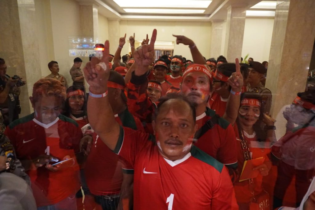 Puluhan suporter Ganjar Yasin tiba di Rama Shinta Ballroom Patra Hotel and Convention Semarang, Kamis (21/6/2018).