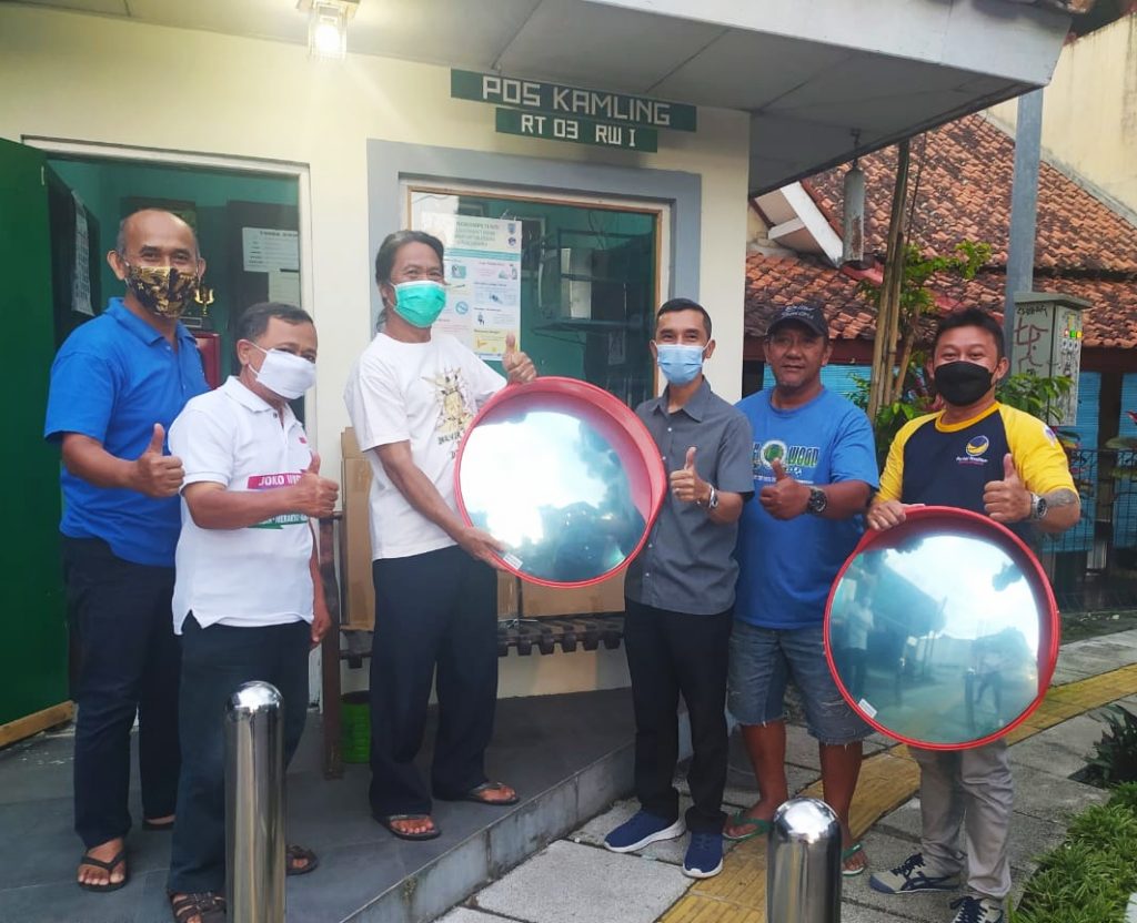 Pengurus DPD NasDem Kota Salatiga membawakan bantuan berupa dua buah cermin lalu lintas yang akan dipasang di beberapa titik rawan kecelakaan.
