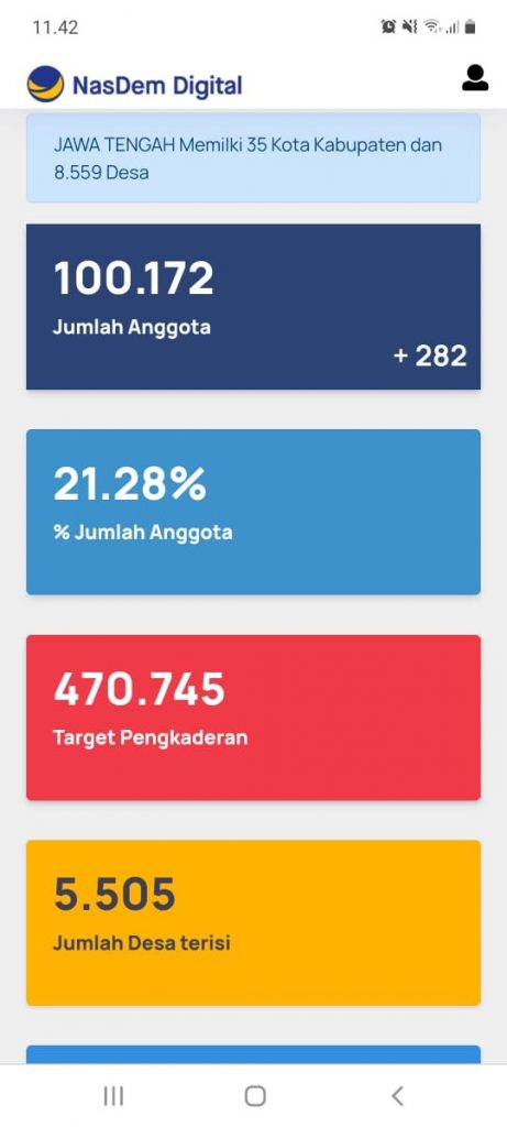 Semarang – Terhitung Minggu (25/4) Pukul 11:30, capaian e-KTA NasDem Jateng tembus angka seratus ribu, Sebuah keberhasilan yang patut dirayakan karena jika dibanding bulan Maret yang masih bertengger di angka empat puluh ribu, namun hanya dalam tempo dua bulan, mengalami kenaikan satu setengah kali lebih.
