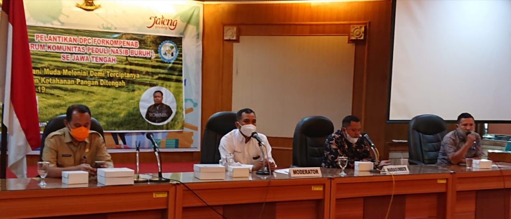 Acara pelantikan itu diawali dengan Focus Group Discussion (FGD) dengan tema “Dampak Covid-19 terhadap Ketahanan Ekonomi,” Bersama Forum Komunitas Petani dan Buruh ( Forkompenab) DPD Jawa Tengah.