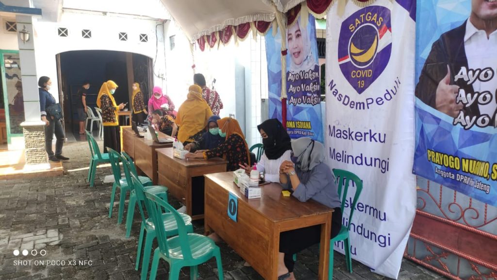 JATENG.NASDEM.ID – Masyarakat kecamatan Randublatung silih berganti mendatangi kediaman Ketua DPC NasDem Randublatung Kak Elvis Santikaningrum, Selasa (29/9) sejak pagi. Hari ini, digelar vaksinasi dosis kedua dari anggota Komisi VIII DPR RI Kak Sri Wulan serta DPD NasDem Kabupaten Blora.