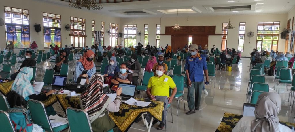 Selain dukungan nakes Dinkes, Dinas Komunikasi dan Informasi Kabupaten Sukoharjo juga membantu jaringan internet. Relawan Bolone Mbak Eva serta Garda Pemuda NasDem juga membantu pelaksanaan di lapangan, agar vaksinasi berjalan lancar tanpa kerumunan.