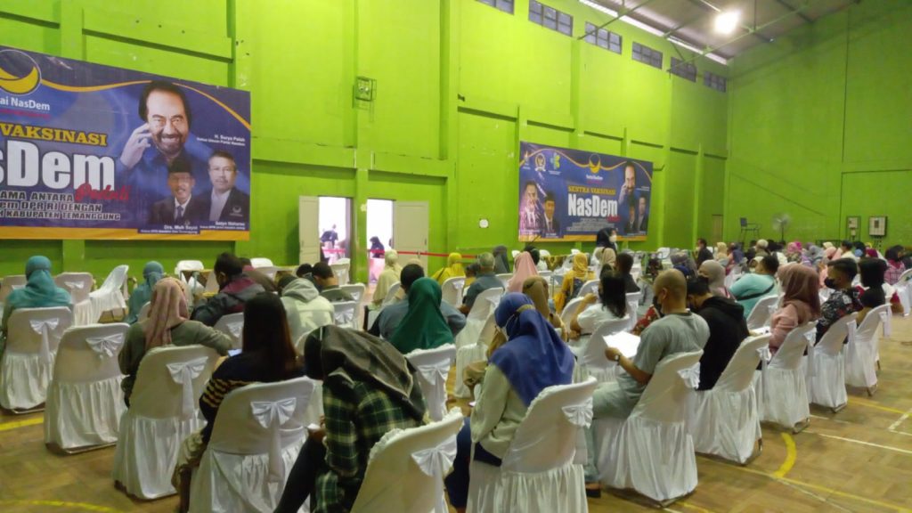 JATENG.NASDEM.ID – Vaksinasi dosis kedua yang diselenggarakan DPD Partai NasDem Kabupaten Temanggung, Senin (18/10) berjalan lancar. Sejak pagi, warga masyarakat yang akan mengikuti vaksin sudah berjejer antre di halaman GOR Bambu Runcing, Temanggung.