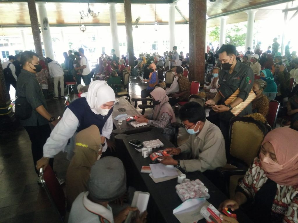 Penyerahan bantuan soial itu juga dihadiri oleh ratusan penerima Bantuan Keluarga Harapan (BKH) dan Bantuan Pangan Non Tunai (BPNT) dan perwakilan dari dinas sosial, BNI, Pos, serta TKSK.