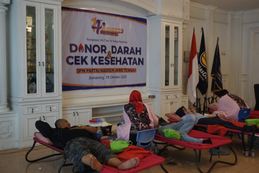 JATENG.NASDEM.ID – Dalam rangka memperingati Hari Ulang Tahun (HUT) ke-14 Partai NasDem, Dewan Pimpinan Wilayah (DPW) NasDem Jawa Tengah menggelar berbagai kegiatan sosial dan kemasyarakatan. Salah satu kegiatan utama adalah aksi donor darah yang digelar di Kantor DPW Partai NasDem Jawa Tengah di Jl. Tawangsari no 10, Kelurahan Tawangsari, Semarang Barat Kota Semarang. DPW menargetkan dapat mecapai 805 kantong darah di 15 titik lokasi se-Jawa Tengah.