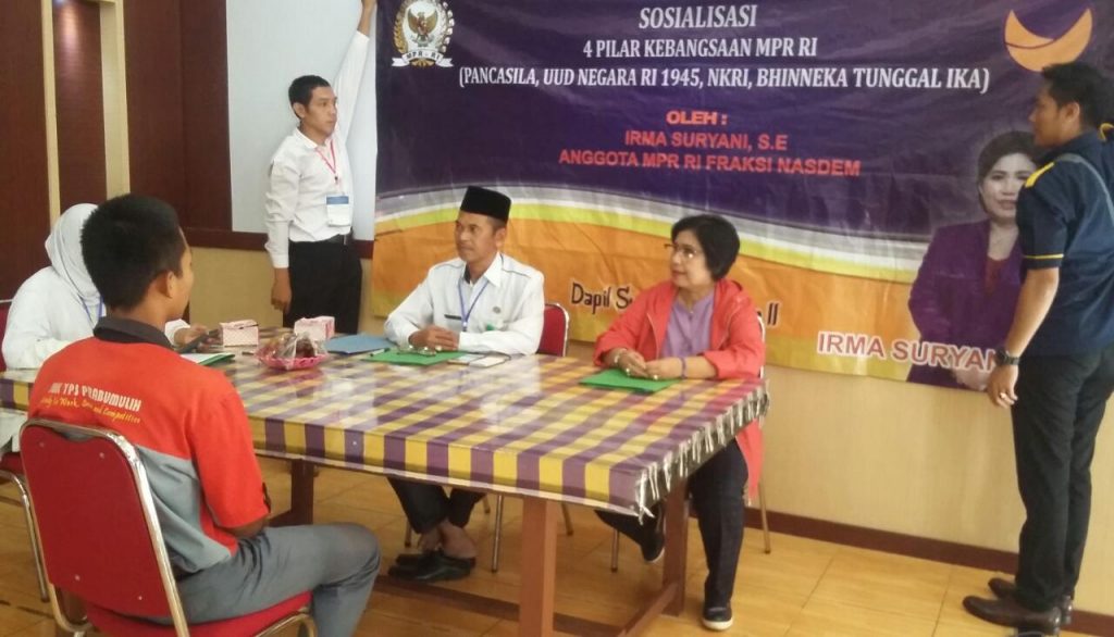 PRABUMULIH, (22 Februari): Anggota DPR RI dari Fraksi NasDem Irma Suryani Chaniago, melaksanakan kegiatan Reses pada masa sidang ke 3 Tahun 2017-2018 di Daerah Pemilihannya di Sumatera Selatan 2. Setidaknya ada 10 kabupaten di Sumatera Selatan 2 yang akan disinggahi. Berbagai kegiatanpun dilakukan Ketua DPP NasDem ini untuk menyampaikan pesan. Mulai dari sosiaslisasi 4 pilar hingga kegiatan Lomba Membaca Surat Pendek Alquran.