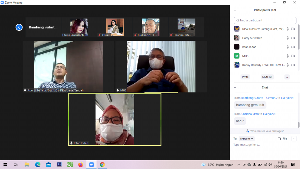JATENG.NASDEM.ID – Panitia Rakorwil DPW NasDem Jateng kembali menggelar rapat daring, Rabu (30/6). Agenda rapat membahas kesiapan Rakorwil yang direncanakan akan digelar pada Agustus mendatang.