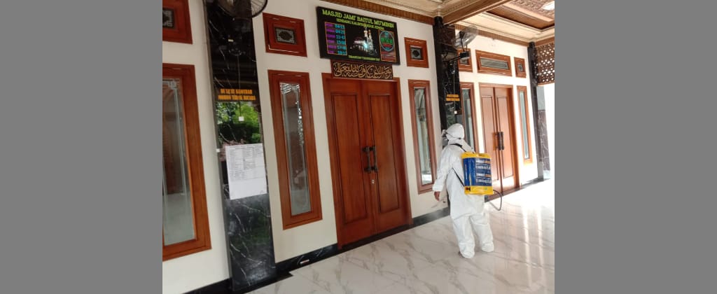 Usaha serupa juga dilakukan relawan Sahabat Lestari. Untuk mengurangi risiko penularan Covid-19 di tempat ibadah, relawan Sahabat Lestari melakukan penyemprotan disinfektan di masjid.