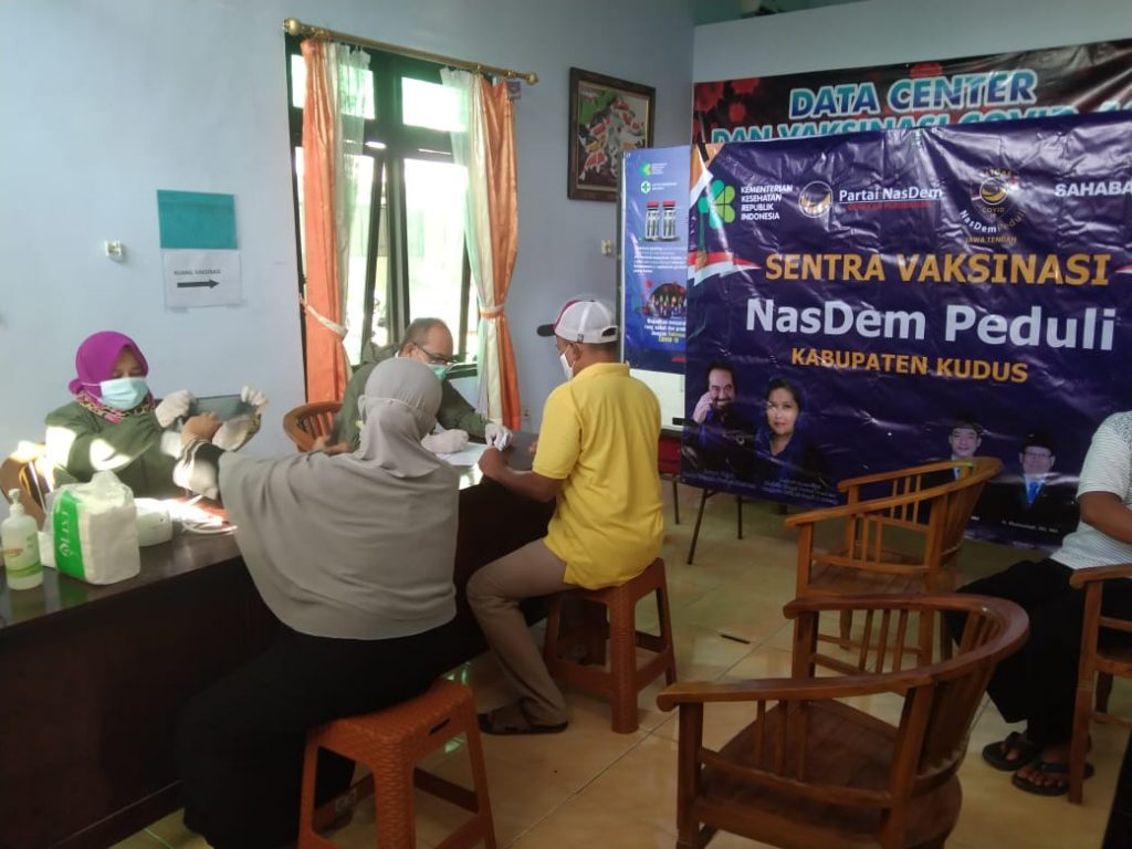 JATENG. NASDEM.ID – Vaksinasi massal NasDem Peduli di Kabupaten Kudus berakhir hari ini. Sebanyak 100 dosis vaksin covid-19 disuntikkan di Puskesmas Mejobo. Sebelumnya, sebanyak 900 dosis vaksin telah disuntikan untuk warga Kota Kretek di berbagai kecamatan.