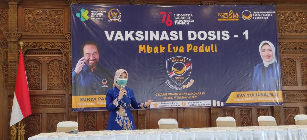 JATENG.NASDEM.ID – Masyarakat Kabupaten Sukoharjo begitu antusias menyambut gelaran vaksinasi covid-19 yang dilaksanakan Partai NasDem bersama anggota Komisi III DPR RI Kak Eva Yuliana di Gedung Graha Mulya, Sukoharjo, Selasa(14/9).