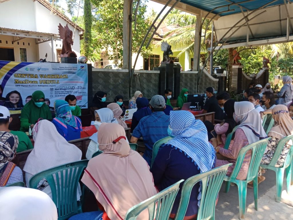 JATENG.NASDEM.ID – Vaksinasi NasDem Peduli di Kabupaten Jepara dilaksanakan di tujuh titik secara serempak, Minggu (19/9). Salah satu titik vaksinasi di Desa Banjaragung, Kecamatan Bangsri, Kabupaten Jepara.