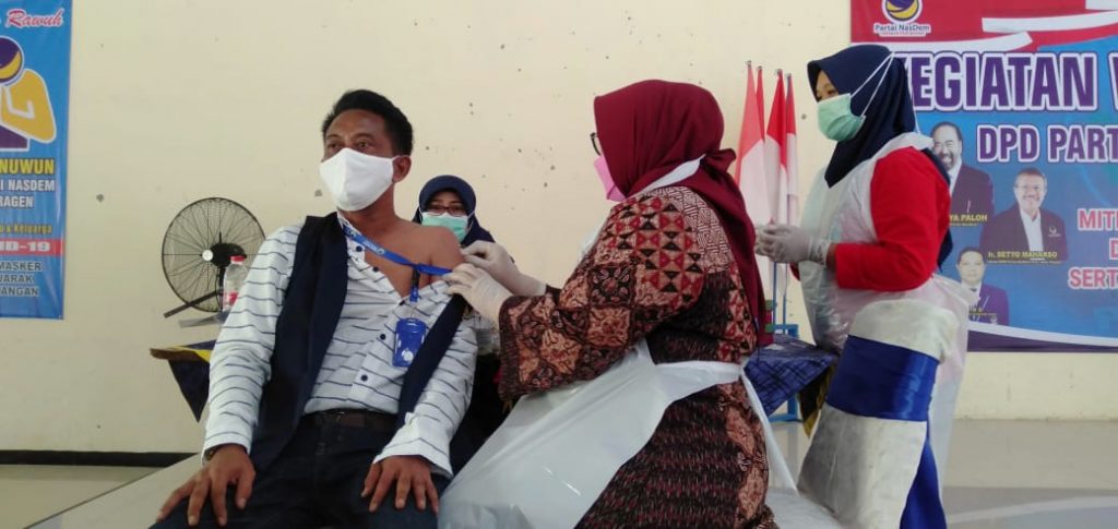 Ketua DPD NasDem Kabupaten Sragen Kak Herry Sanyoto menjelaskan bahwa vaksinasi ini bekerjasama dengan DPR RI Fraksi NasDem Kak Eva Yuliana dan Kak Fadholi. Meski di Sragen telah banyak pihak yang menggelar vaksinasi, tetapi vaksinasi NasDem tetap dibanjiri peserta.