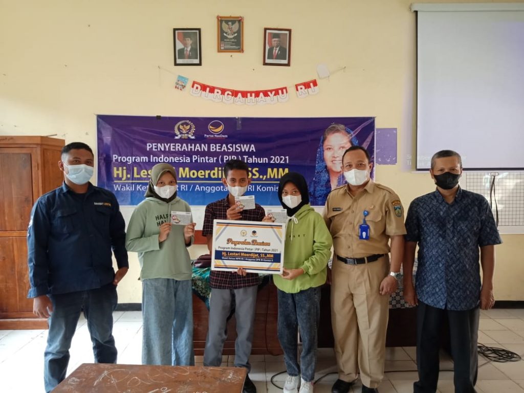 JATENG.NASDEM.ID – Wakil Ketua MPR RI Kak Lestari Moerdijat kembali menyalurkan aspirasi beasiswa Program Indonesia Pintar (PIP) di Kabupaten Jepara. Kali ini secara simbolis diserahkan buku tabungan beasiswa PIP kepada penerima di SMP Negeri 1 Kedung dan SD Negeri 2 Pendosawalan Kecamatan Kalinyamatan.