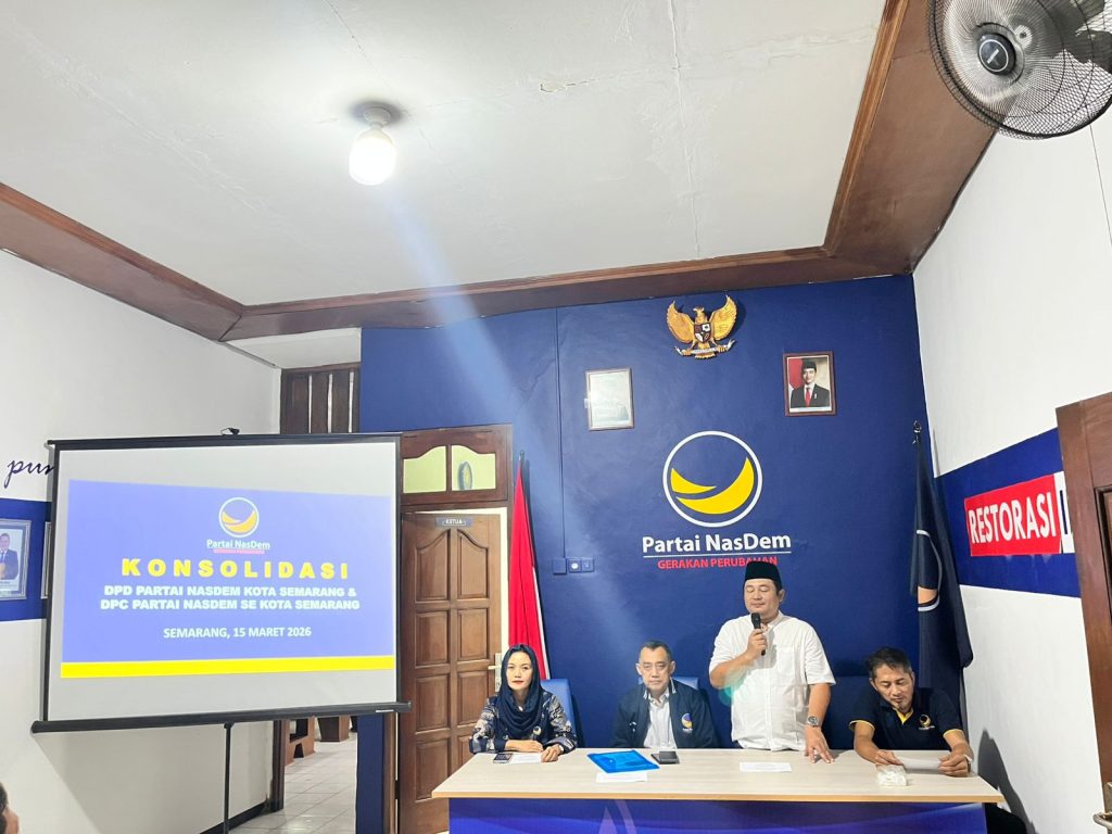 JATENG.NASDEM.ID – Dewan Pimpinan Daerah (DPD) Partai NasDem Kota Semarang menggelar kegiatan konsolidasi, pendidikan politik, dan buka puasa bersama pada Minggu (15/3/2026) di Kantor DPD Partai NasDem Kota Semarang. Kegiatan tersebut dihadiri pengurus DPD, pengurus DPC dari 16 kecamatan se-Kota Semarang, serta perwakilan DPW Partai NasDem Jawa Tengah.
